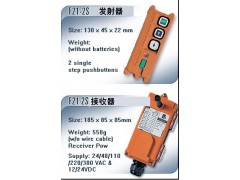 詳細信息 發(fā)射器(手持) 尺寸:13×4.5×2.2厘米 重量:約60克 接收機尺寸:18.5×8.5×8.5厘米 重量:550克 *具有2只操作按鍵,外加1只停止按鍵 *控制點數(shù)達4個 *帶有電池電壓警示裝置,在電壓不足時能自行切斷電路。 *安全旋轉(zhuǎn)鑰匙開關(guān),防止未授權(quán)者使用。 *可由電腦接口設(shè)定內(nèi)部功能 *三個動作按鍵可設(shè)定為是否互相抑制。 *備用1鍵可設(shè)定為開機、關(guān)機、加速、捺跳、普通等功能。 控制距離:可達100米 安全碼:43億種以上出廠永不重復(fù) 使用溫度:-35℃至+80℃(不考慮電池耐溫) 防護等級:IP65 發(fā)射器電源:直流3V(2節(jié)堿性5號電池可使用4個月) 接收器電源:交流380V/220V可選擇,或直流12V/24V 輸出觸點容量:5安培全密封式繼電器輸出(使用交流250V/10A繼電器,5安培保險絲)。 標準配置: *發(fā)射器1支(含背帶) *接收機1部 *接收機自帶1米連接電纜 *操作及維護手冊1本 適用于升降機構(gòu)、電動車、電動門等 及4個接點以下的工業(yè)控制遙控用。 |