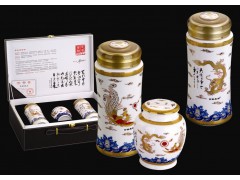 廣東珠海供應骨瓷金運龍鳳雙層杯三件套