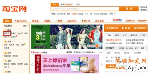 (二) 通過(guò)淘寶網(wǎng)首頁(yè)如下兩個(gè)入口或在地址欄中輸入paimai.taobao.com進(jìn)入淘寶拍賣會(huì)頻道后查找。