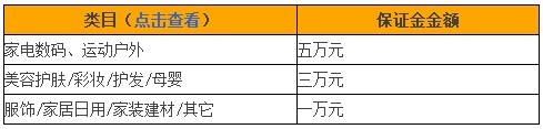 (七) 在綁定的支付寶賬戶中足額存入入駐保證金,各類目保證金如下表,申請同時經(jīng)營多個類目的按最高值收取:(類目點擊查看)
