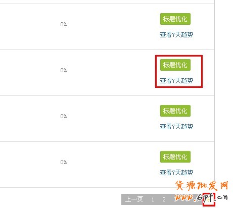 這里打開標題優化,注意,這里可以從最末頁開始優化,因為默認按展現方式排列,越后面的商品展現越低,也越需要SEO優化。(第2組提示,新上架的商品一般也會在最后面,所以注意找老款沒展現的商品來優化)