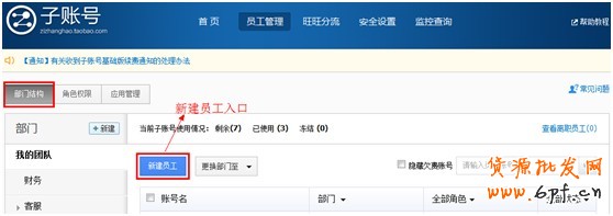 至此,主賬號對員工賬號的創建、授權和安全保護設置已全部完成。員工可以使用子賬號登陸賣家中心進行店鋪管理的相應操作,也可以登陸阿里旺旺進行溝通交流了。