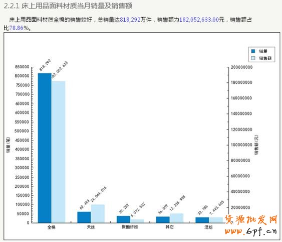 如何避免這類錯(cuò)誤,一定要去了解市場(chǎng),比如:同類產(chǎn)品的市場(chǎng)價(jià)格定位、品牌占有率,競(jìng)爭(zhēng)品牌的銷售情況,消費(fèi)者偏愛的產(chǎn)品屬性等。如下圖數(shù)據(jù):明顯可以看出消費(fèi)者偏愛全棉材質(zhì)的床上用品。企業(yè)便可在產(chǎn)品材質(zhì)上做些調(diào)整。