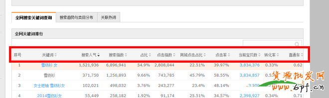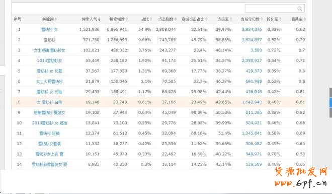 選擇關鍵詞,必須先研究關鍵詞,數據魔方最大的功能還是查詢關鍵詞,讓我們回歸其本職功能。以“雪紡衫”為例進行搜索,我們會發現——