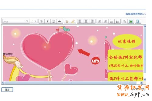 <tr> <td background="圖片地址">填寫內容</td> </tr> </table> ◆ 第一步,打開Æ我的淘寶Æ管理我的店鋪Æ基本設置,在促銷區(qū)工具欄中點擊編緝源文件,把圖片背景代碼復制到促銷區(qū)中,再把剛剛上傳到網(wǎng)絡相冊的圖片地址復制到下面放圖片地址的地方如圖所示: