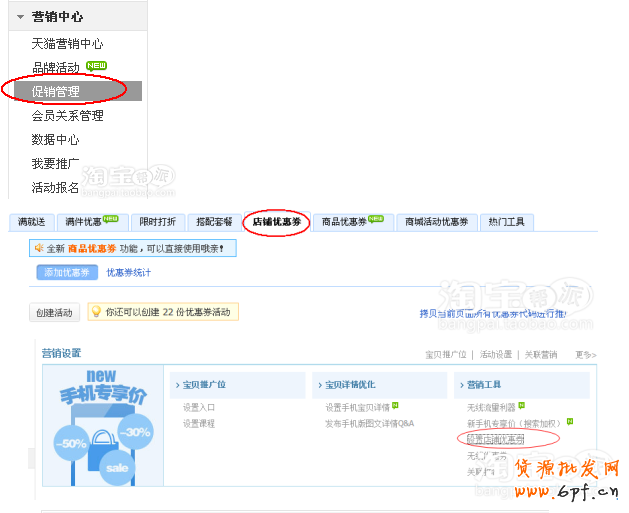 此外,我們還可以在一陽指的界面上設置店鋪優惠券,提高成交轉化率。