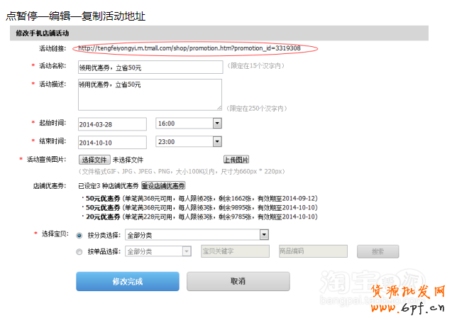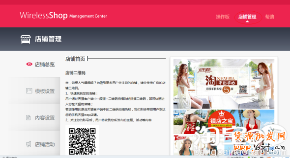設置模板大小,然后進行內容設置,可加入單件商品或店鋪活動。