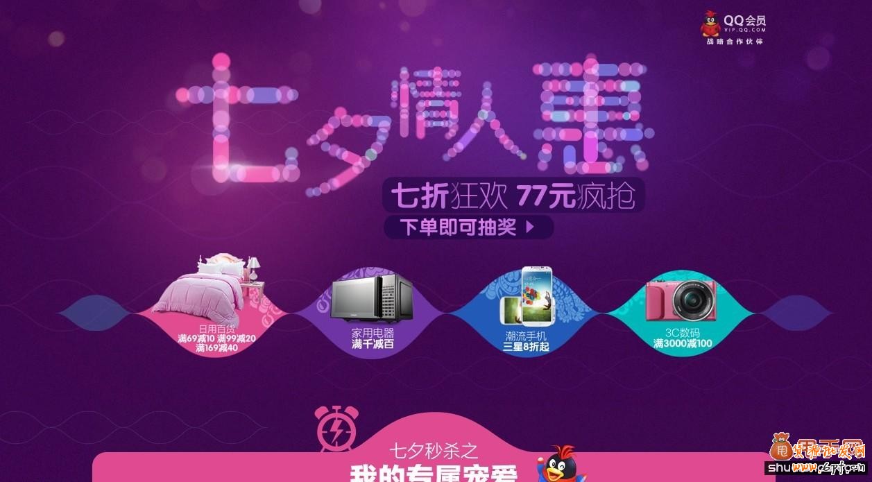 時代的發展,如今情人節已經成為了很多年輕人最期待的節日。當然我們開網店會錯這種好機會嗎。很多網站都在借這個節日推出各自的促銷活動,吸引點擊。精彩的首頁是促銷的第一步,下面為大家分析以下幾個熱門網站關于七夕節日活動促銷的首頁分析。