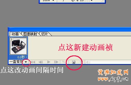第六步開始做動(dòng)畫:先改變動(dòng)畫播放的時(shí)間,時(shí)間改為0.2秒,你自己定了。再新建動(dòng)畫禎,點(diǎn)周圖中新建按鈕即可。如圖: