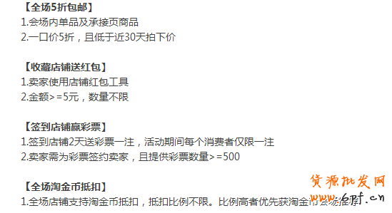 此外,淘寶女裝還介紹了四種玩法,全場5折包郵、收藏店鋪送紅包、簽到店鋪贏彩票和全場淘金幣抵扣,這和淘寶全網(wǎng)雙11玩法基本相同。