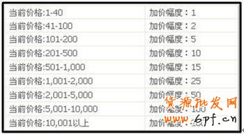 系統自動代理加價幅度表如下: