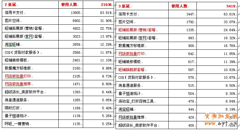 從各星級賣家訂購占比的數(shù)據(jù)中,我們可以看出各星級的訂購賣家服務(wù)工具的賣家在該星級的總賣家數(shù)中的占比情況。規(guī)律是,星級越高,訂購服務(wù)工具的賣家占比越大。皇冠以上的訂購服務(wù)工具的賣家占比基本都在80%以上。由此可以看出,越高星級的賣家對服務(wù)工具的需求越大;隨著店鋪規(guī)模的加增,賣家依靠人力來對店鋪進(jìn)行管理,營銷越來越不可能,這個(gè)時(shí)候必須要借助一些賣家服務(wù)工具。