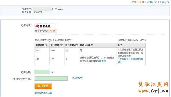 下面以招商銀行為例,為大家介紹支付寶卡通的充值方法。