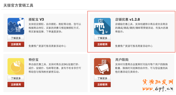 1、工具入口:商家中心—營銷中心—天貓營銷工具—店鋪優惠: