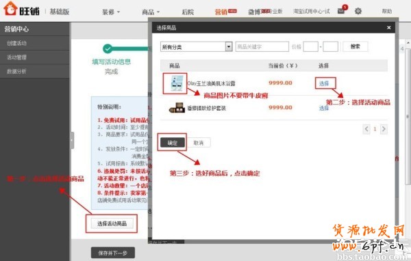 (1)選擇活動商品:一個活動可以選擇多款寶貝