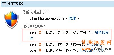 第一種方法,你可以在我的淘寶—“支付寶專區”中看到“您有×個交易,買家已經匯款給支付寶,等待您發貨”。點擊“等待您發貨”那個鏈接即可。(如下圖)
