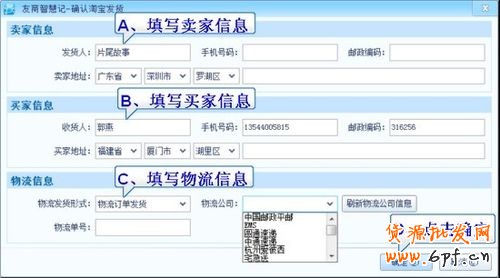然后從下拉框里選擇物流公司,并正確輸入運單號即可。點擊“確認已發貨”就可以將貨物發出了。
