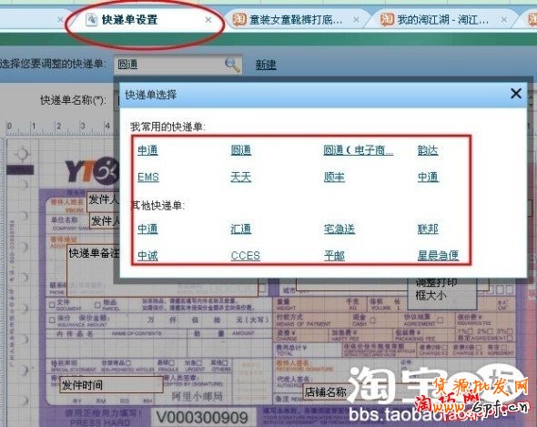 此圖是快遞單格式設置。有很多快遞公司供選擇。賣家可以根據自己的情況進行設置。