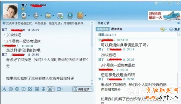 4、不要使用除阿里旺旺外的聊天工具,避免不良買(mǎi)家敲詐勒索無(wú)法舉證。