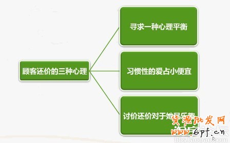 (3)討價還價是她的樂趣:有些童鞋不相信還有這樣的顧客以討價還價為樂趣。但大家可以看看自己的閨蜜和朋友群里有沒有這種顧客。她有的是時間還價對她來說是一種樂趣,她自己買東西還價還非常樂于幫朋友們出力。大家一逛街都會帶上她,她在朋友圈里都是受到追捧和夸獎的,她自己也非常有成就感。在她們的字典里就沒有還不下來的價,只要自己有時間磨,有本事跟老板砍,心里的那個小算盤一二三算出來就能把價格還下來,心里門清一本帳。相對這種顧客是比較難應付的,世上就怕愛好這兩個字,她的愛好就在這里,她可以以各種理由,各種時間,各種語言,想起來就找你不咸不淡地說一回好像她買東西是很隨意的不是非常想購買的那種。但只要我們仔細觀察,她繞來繞去最終還是會繞到價格糾結上進行我們討價還價的過程。只要我們了解她的心里一樣是有應對方法的。下面我例舉了幾個小例子來應對各種討價還價的顧客心里。無論是哪種心里只要我們自己的用心了解,做一個觀察入微的賣家,給顧客的購買行為做一個正確的引導,無論她是糾結于哪種心里,我們都可以把她拖出那個局限的空間,帶給她更多的商品信息和產品的附加值。因勢利導為上上策,千萬不要選擇針鋒相對導致成為一個對利面,而要站在顧客的角度上說她想聽的話聽,了解她的心里,深挖她的需求。