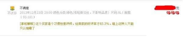 買家給出的中差評評語,掌柜的解釋在評價詳情那里是能顯示的,
