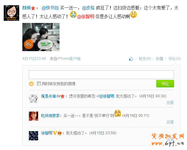2010年才上線的快書包不到兩年的時(shí)間就拿到900萬(wàn)投資!訂單翻番,贏得一流口碑。成功的關(guān)鍵之一就是快書包CEO@徐智明親自做微博客服,如@徐智明說:“新浪微博讓我找回了當(dāng)?shù)晷《母杏X…”他幾乎回復(fù)了每一條@他的微博。