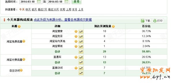 我們如果從“流量來源構成”那里進去,會看到我們的店鋪的流量從哪里來,如果從哪里來的多,我們以后就會往那里推廣得多。這樣分析有利于我們不會去盲目推廣。很多新手朋友每天都會不知方向地這里推廣那里推廣的,到后來累了自己還沒有效果。現在,大家學會了看這下面的圖,了解到你的寶貝在哪個方向來得多,就可以往那里用心一點。這樣才不會浪費精力又沒有方向感。因為大家類目不同,款式和寶貝不同,所以這些數據都是不一樣的。