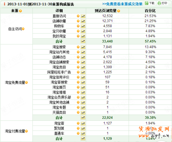 可以看出這個店鋪的流量大約60%的流量都是自主訪問流量,同時免費流量40%左右,對很多賬戶來說這樣感覺很好,但是對這個繼續發展和轉變的店鋪,鉆展,直通車推廣勢在必行。