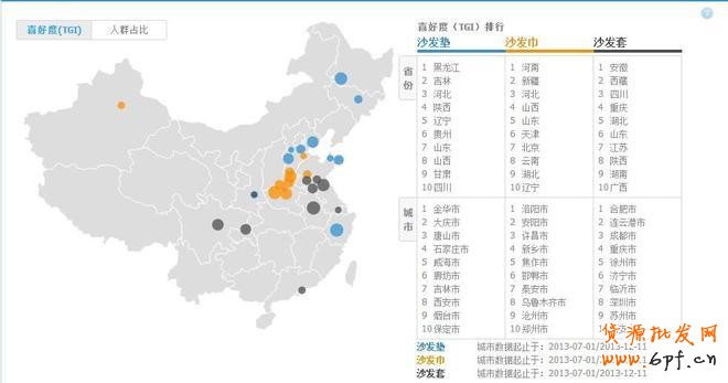 從圖中可以看出,我們的沙發墊目前訪客地區占比最高的為華東和華北區,西北也有兩省入圍,那么只要我們迅速的找準客戶所在地區,我們就可以完美投放了。因為直通車是可以選擇投放地域的。