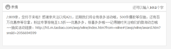 與傳統的短信、EDM營銷相比,我們這次選擇了無線端的新起之秀“微淘”。借助無線端的大勢以及淘寶官方對微淘的推波助瀾,以獎品、折扣利誘,召回以純兼A21的老客戶以及潛在新客戶。