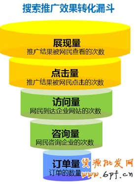 這個(gè)是搜索引擎推廣的漏斗圖,做上面是展現(xiàn)量,最低端是訂單量。我們的目的就是要訂單量。但是,實(shí)現(xiàn)這個(gè)目的需要做好每一個(gè)中間環(huán)節(jié)。他們是:點(diǎn)擊量,訪問(wèn)量,咨詢(xún)量。做不好網(wǎng)絡(luò)營(yíng)銷(xiāo)的大部分原因往往就是這三個(gè)環(huán)節(jié)。今天,我們就把他分析清楚。
