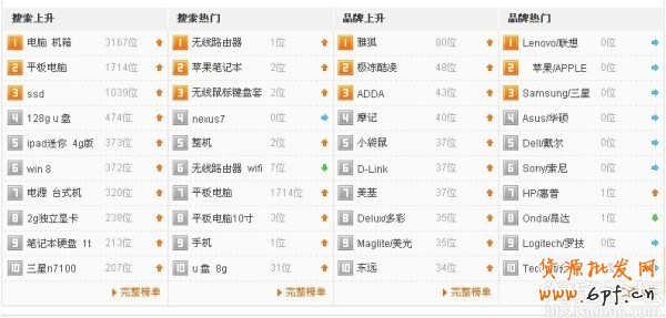 我們將看到各頻道下面有熱門搜索,點擊“更多”,會進入到“淘寶排行版”