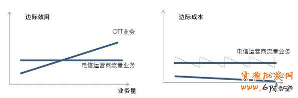 圖OTT業(yè)務(wù)與電信運營商流量業(yè)務(wù)的邊際效用/成本對比