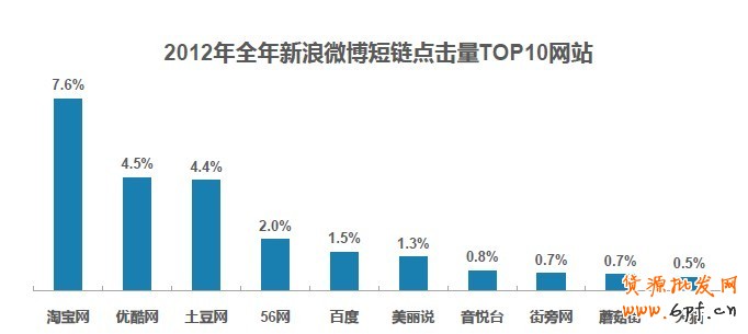 2012年微博發(fā)展迅猛,體現(xiàn)微博多元化傳播效果的同時,也展現(xiàn)出微博與網(wǎng)站之間流量轉(zhuǎn)換的特征和規(guī)律。其中,電商和視頻網(wǎng)站備受微博用戶關(guān)注。