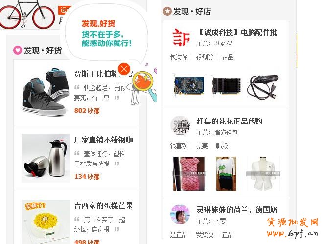 三、淘寶首頁“愛淘動(dòng)態(tài)”欄目取消,新增加“發(fā)現(xiàn)好店 ”和“發(fā)現(xiàn)好貨”兩個(gè)欄目,以顯示集市精品為主;