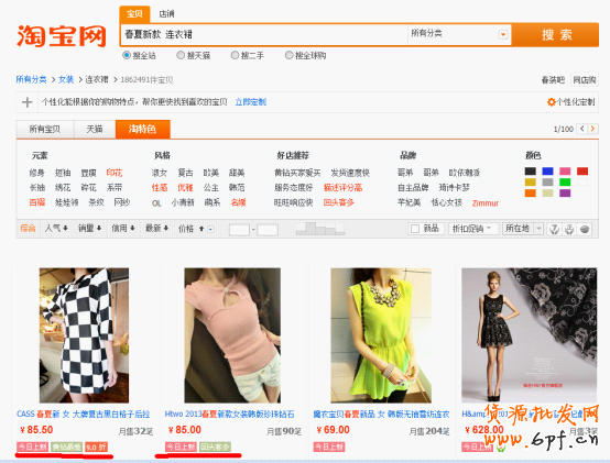 這個是淘特色,全部都有今日上新的標簽,而淘寶根據他們寶貝的評價跟回頭率,再加上了自己的標簽! 所以新品寶貝,最重要的是 第一筆用戶的好評跟又臭又長的評價。 這個是不論如何都必須要建立的,才有可能在第二周最大的展示在各種新品的入口!等下我們講到新品選秀的流量替換,大家就會了解,淘寶搜索引擎是通過一個什么流程,把他認為值得推薦的新品寶貝選取出來。