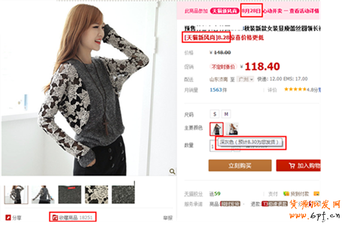第一,這種營銷手段可以幫助賣家積累銷量,當然,并不是所有的買家都愿意去等,所以如果你同一款寶貝有一種顏色是現貨的話,買家可能次而求之,買下可能不是最喜歡的顏色,但基本能滿足她的需求。因此,可以留住這部分買家的同時積累銷量,同時也是為即將開始的活動和預售積累人氣,一舉三得,如下圖所示。