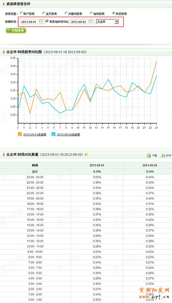 1.選擇好時間點,指標選擇點擊率。