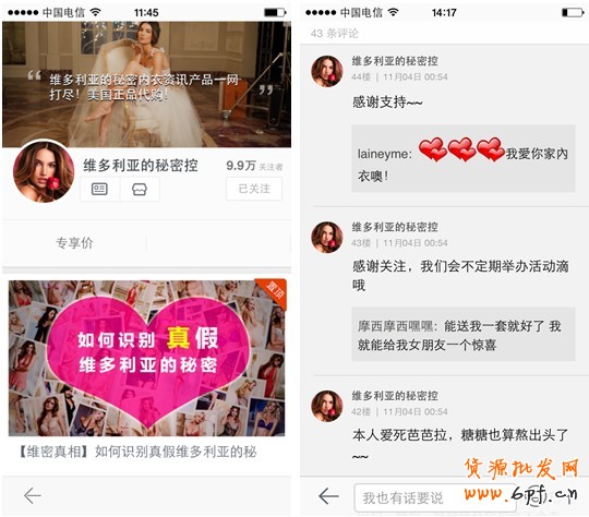 微淘平臺的互動性很好的彌補了這一不足。代購賣家“維多利亞的秘密控”通過微淘這個兼具社區性質的平臺,則緩解了自己遭遇的信任危機。通過微淘發布了商品或活動后,再多留言消息,該賬號也會盡量回帖答復,保持一個非常好的互動水平。讓一群喜愛海外代購產品的買家聚在一起,分享關注海外代購的所有資訊,潛移默化地增加了粉絲們的忠誠度和信任感,也免除眾多買家面臨PC端搜索迷茫的煩惱,轉化率提高了不少。