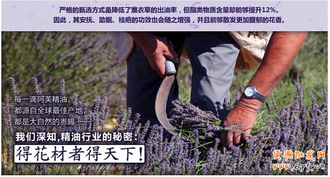 ④建立在一種普遍的共識上:好原料鑄就好產品。阿芙費勁心思介紹產品的原產地是多么夢幻丶多么優質:法國Herbarom莊園的薰衣草等。這容易在消費者腦海中留下一種感覺:好的原產地=優質的原材料=具有卓越功效的精油,從另一個側面塑造專業形象。阿芙用了大量的實景圖來證明原產地這一點,可所謂費勁心思。