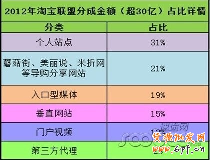 淘寶聯(lián)盟2012年的分成超30億,營業(yè)額在500—1000億元,淘寶去年的銷售額突破10000億元,其中有淘寶聯(lián)盟提供的銷售額約占5%—10%左右。