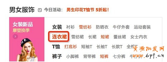 首先,進入淘寶首頁,在男女服飾類目當中,選擇比較熱門的“連衣裙”