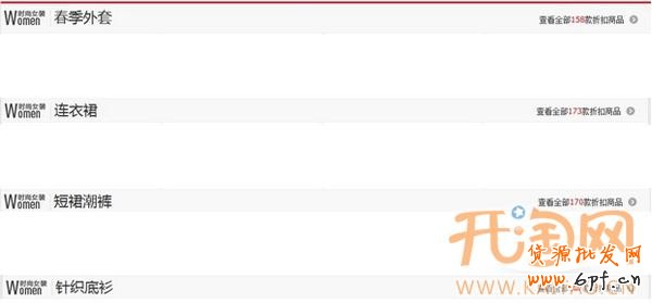 這是第二屏了,第二屏也是網友關注的重點,用品牌折扣來吸引消費者,并且這里的選擇的產品很有講究滴,名口特惠一定要起一個承上啟下,讓顧客在這第一、二屏要么產生營銷的動作,如果沒有就要引導消費者后下瀏覽選擇更多適合他的產品,同時在這一屏也對消費進行了理性和感性的區分,以及利用人對于生活的向望,用一種出于生活,又高于普生活的那種跳一下就……那種快感!讓你好不及糾結!