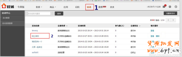 1、親需要登錄你的旺鋪后臺(tái),在導(dǎo)航位置點(diǎn)擊“活動(dòng)”,即可進(jìn)入。