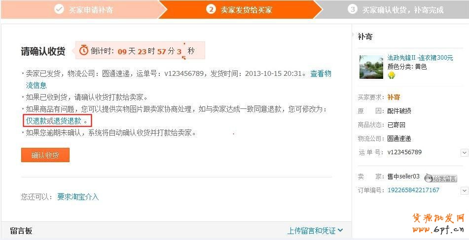 E、買家收到貨物后,確認(rèn)無誤可確認(rèn)收貨。此確認(rèn)收貨=確認(rèn)賣家完成補(bǔ)寄申請+打款賣家。