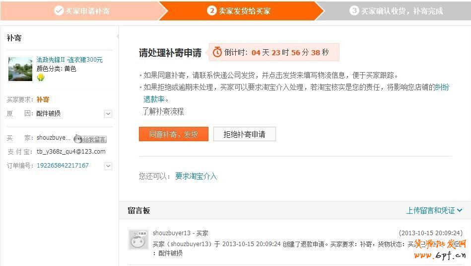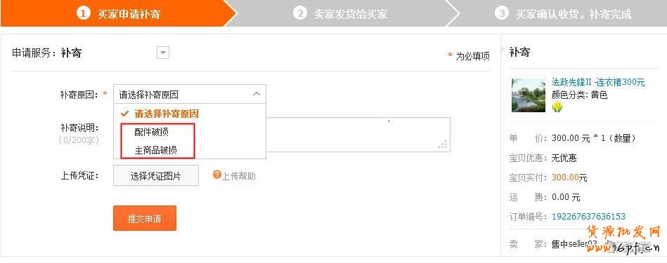A、 買家在申請頁面選擇“補(bǔ)寄”