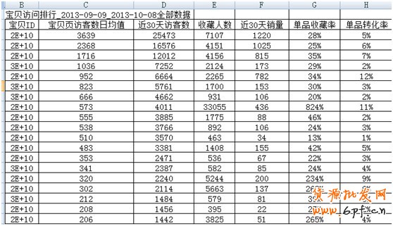 路徑:寶貝詳情頁,得到這些數據之后我們要進行一定的處理,得出兩個大家耳熟能詳的數據:單品轉化率(購買人數/來訪人數)和收藏率(收藏人數/來訪人數)。