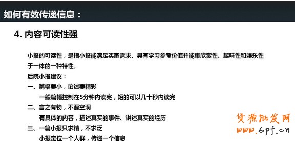 小報也一樣,需要主題明確,買家點擊進你的小報,你在第一秒想傳遞給買家什么信息?小報標題一定要做到簡潔明了,讓買家一眼就能獲取信息,每一段文字的標題也一樣,不要讓買家費力的去讀,否則很難有效吸引買家并傳遞信息。