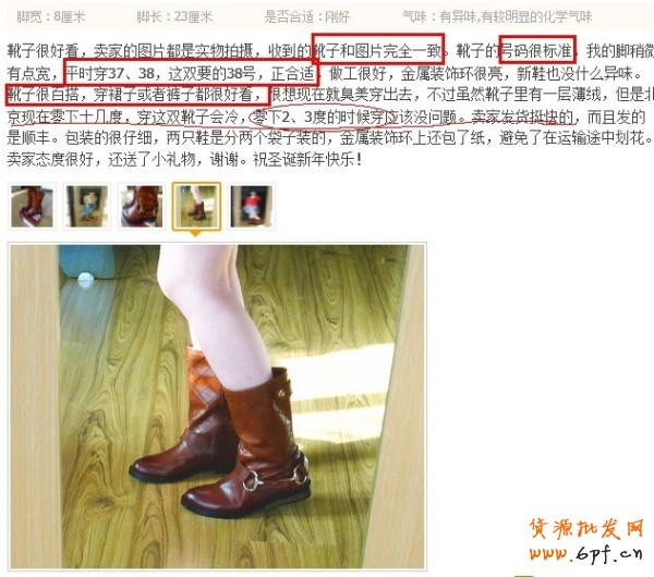 第二張的這位是我們的學員,他們家店鋪這款靴子0銷量起步,前期一天1-2單,后期正式因為有了這樣給力的評價之后每天銷量增加到了8-10單,非常給力的評價,就像給消費者吃了一顆定心丸。