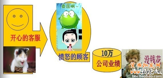 反之,開心的客服---憤怒的顧客--業績的下滑--員工的低收入